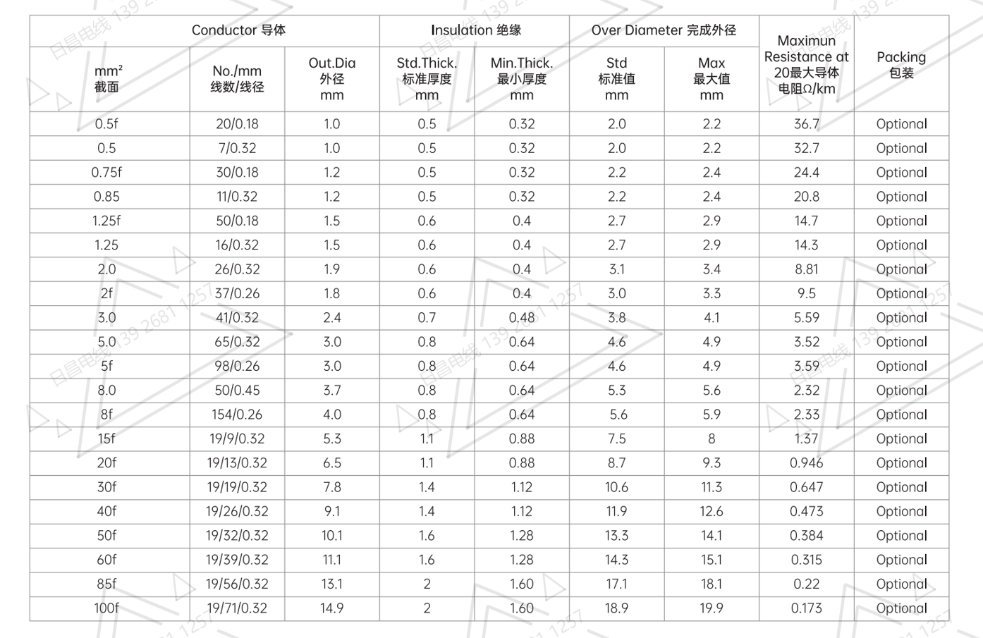 絕   緣 :交聯聚乙烯